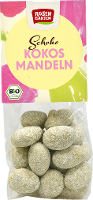 Weiße Schokolade* 46% (Rohrohrzucker*, Kakaobutter*, VOLLMILCHPULVER*), Vollmilchschokolade* 32% (Rohrohrzucker*, Kakaobutter*, VOLLMILCHPULVER*, Kakaomasse*), MANDELN* geröstet 20%, Kokosraspel* 2% Kakao: 40% mindestens in der Vollmilchschokolade| Energie | Fett | gesättigte Fettsäuren | Kohlenhydrate | Zucker | Ballaststoffe | Eiweiss | Salz |