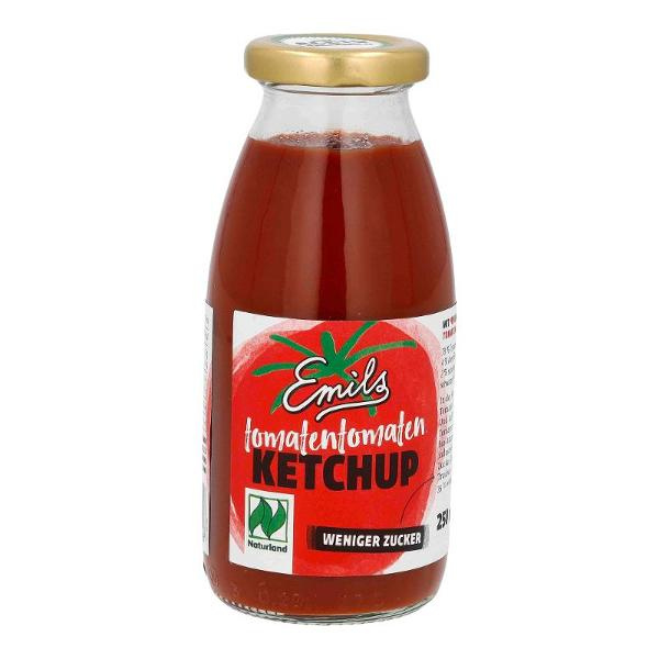 78 % Tomatenmark* (einfach konzentriert), Apfelessig*, Agavendicksaft*, 4 % Aceto Balsamico di Modena IGP* (konzentrierter Traubenmost*, Weinessig*), 2 % sonnengetrocknete Tomaten*, Zwiebel*, Steinsalz, Nelke*, Ingwer*, schwarzer Pfeffer*.| Energie | Fett | gesättigte Fettsäuren | Kohlenhydrate | Zucker | Eiweiss | Salz |