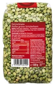 Halbe grüne Schälerbsen*| Energie | Fett | gesättigte Fettsäuren | Kohlenhydrate | Zucker | Ballaststoffe | Eiweiss | Salz |