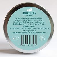 SCHETTLERs Pulver Typ 1 - Bio-Zahnputzpulver aus Rügener Dreikronen Heilkreide, Meersalz ohne Rieselhilfen und getrockneter Bio-Pfefferminze. Ohne Xylit!Perfekt auch für die Zahnpflege Ihres Hundes!Dies ist ein Zahnputzmittel aus unverarbeiteten, natürlichen Zutaten - also ein reines Naturmittel, handwerklich hergestellt in Schwerin/Mecklenburg.Handhabung: Die feuchte Zahnbürste wird in das Pulver gedrückt, so dass etwas Pulver auf den Borsten haften bleibt. Damit putzt man sich nun wie gewohnt die Zähne. Nach dem Putzen sollte der Mund nicht allzu gründlich gespült werden, damit das alkalische Milieu im Mundraum erhalten bleibt. Dieses Milieu bietet einen starken Schutz gegen schädliche Bakterien, die für Karies und Zahnfleischentzündungen verantwortlich gemacht werden.Bitte beachten Sie: Unser Bio-Zahnputzpulver ist ein Naturprodukt ohne Rieselhilfen und ohne künstliche Geschmackskorrektur. Die sehr trockenen Kreidepartikel sammeln sich an den Salzkristallen oder Kräutern und Gewürzen und bilden manchmal kleine Klümpchen, dies stellt keinen Mangel dar. Die Klümpchen lösen sich im Mund sofort auf. Lassen Sie die Dose nach dem ersten Benutzen leicht geöffnet im Bad stehen, so kann überschüssige Feuchtigkeit entweichen.SCHETTLERs Bio-Zahnputzpulver sind die besten rein natürlichen Alternativen zu künstlich-chemischen Zahnpflegemitteln und sind unbedenklich für Kinder und Schwangere. Das Pulver ist verpackt in einer Schraubdeckeldose aus Weißblech.