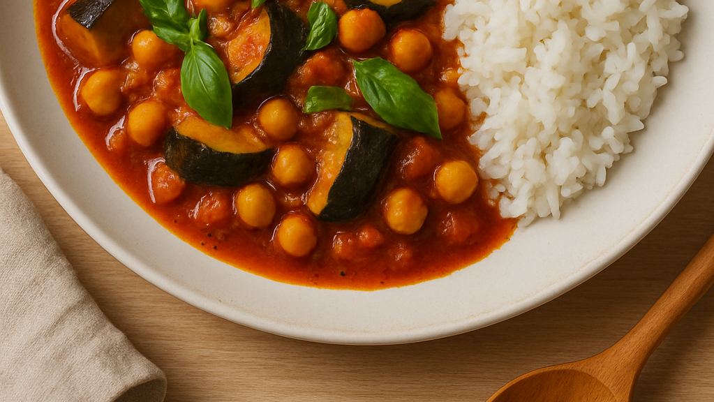 Das Curry auf Tellern anrichten und mit dem restlichen Basilikum bestreuen. Mit Reis servieren.