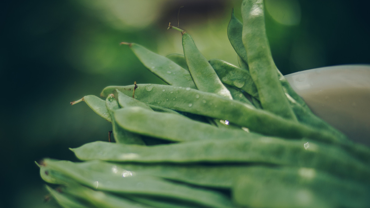 Bohnen putzen, waschen und in Stücke schneiden. Bohnen in kochendes Salzwasser geben und ca. 18 Minuten garen. Inzwischen Pfifferlinge putzen, waschen und gut abtropfen lassen. Zwiebeln schälen und fein würfeln.