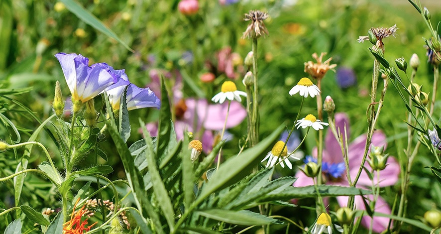 In unserer Region, dem Ostertal, bepflanzen wir jedes Jahr 3 ha Ackerfläche mit einer Blütenmischung, statt mit Getreide. Die spezielle Bio-Saatenmischung erblüht von Frühling bis Spätsommer in unterschiedlichen Farben und Formen. Vollkommen in Ruhe gelassen, bieten diese blühenden Flächen Insekten und Vögeln ein ausreichendes Nahrungsangebot. Kleintiere und Bodenbrüter finden Schutz. Das Bodenleben wird angeregt und besser durchlüftet.